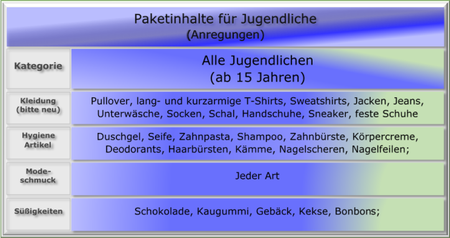 Tabellen, Anregungen, Vorschläge
